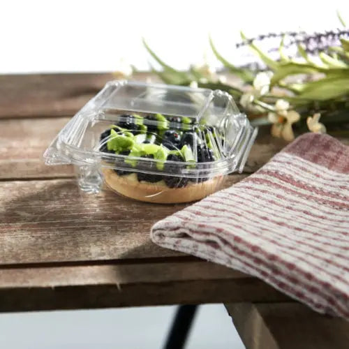 View full detailsInline Plastics 5x5 Square Perimeter Seal Bakery Clamshell Container - #VF8060