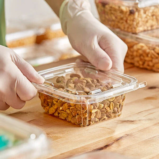 View full detailsSafe-T-Fresh 4" Square Tamper Evident & Tamper Resistant 24 oz Hinged Deli Containers - #TS4024