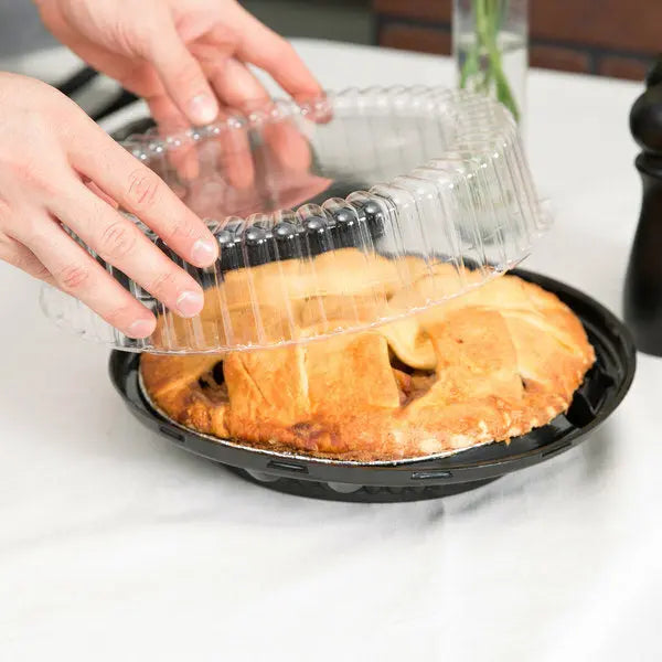 At KitchenDance, we offer a wide selection of plastic disposable pie containers in various sizes to fit any pie you create. Choose from our range of clamshells, crafted from clear plastic in a convenient one-piece design, perfect for showcasing your delicious creations. We also provide two-piece reusable containers, available in multiple sizes, with a clear top to protect and display your masterpiece. Whether you need a low dome or high dome container, we have options to suit your pie's unique needs—whether it's topped with a golden crust or piled high with whipped cream and decorations. Whatever your requirements, we have the perfect container for you!
