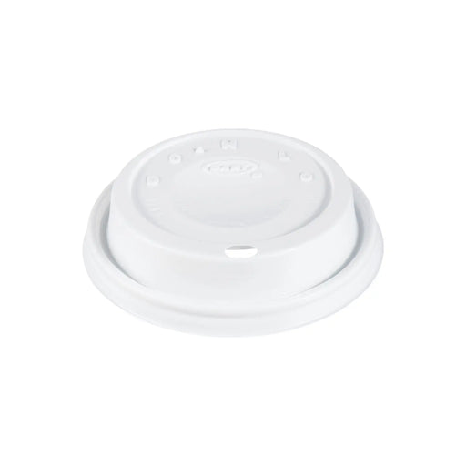 Dart ContainerDart 12-24 oz. White HIPS Plastic Cappuccino Lid - Sleeve of 100 Elevate your to-go beverage service with the Dart 12–24 oz. white cappuccino lid—p...