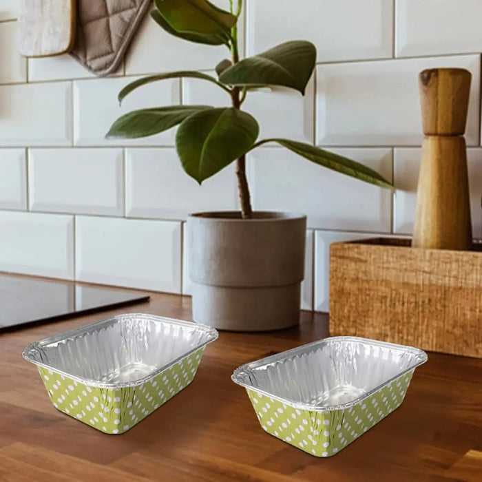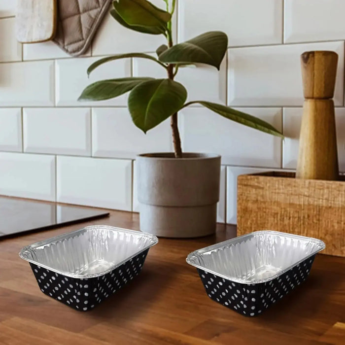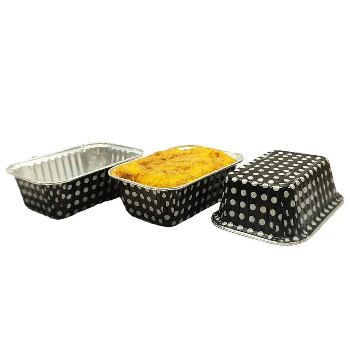 This 6-ounce mini loaf pan is ideal for baking small portions of bread, meatloaf, cakes, and cobblers. Perfect for use in restaurants, bakeries, and home kitchens, this disposable loaf pan combines convenience with style. With its durable construction and bright, non-fading colors, it stands up to the demands of both oven and freezer use, while adding a charming touch with its polka dot design.