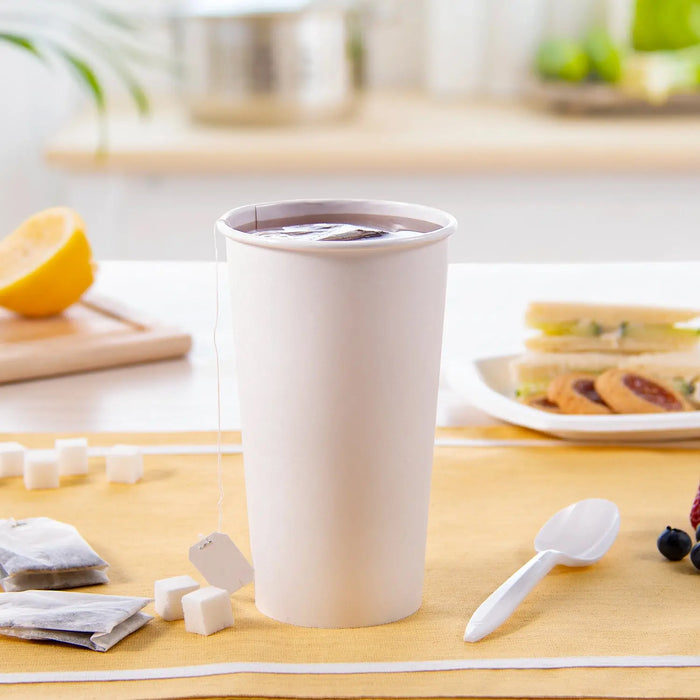 Deliver hot beverages with confidence using these 20 oz. disposable paper hot cups—designed for strength, insulation, and leak protection. Crafted from single-sided poly paper (SSP), these cups feature a moisture-blocking inner lining that prevents sogginess and leaks, making them perfect for serving hot drinks like coffee, tea, cocoa, or cider. Their 20 oz. capacity makes them ideal for larger servings in busy cafés, coffee shops, offices, and drive-thrus. These paper hot cups are compatible with multiple lid styles, helping streamline your service while minimizing inventory complexity. Their stackable design also saves space behind the counter and increases efficiency during rush hours.