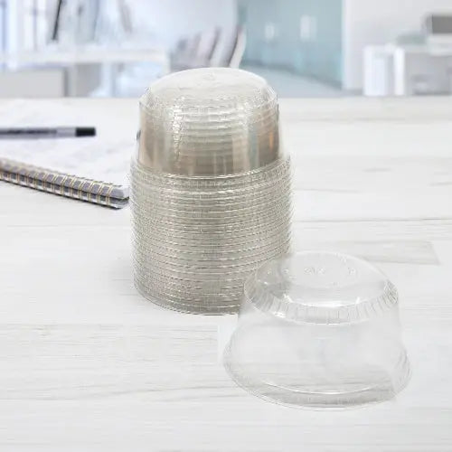 Create eye-catching food displays and secure takeout packaging with this 8 oz. clear PET plastic dome lid. Designed to fit a range of compatible food containers, this dome lid helps highlight ice cream, parfaits, fruit, snacks, and more while keeping contents safe during transport. Made from crack-resistant PET plastic, it offers strength and clarity, making it ideal for cafes, ice cream parlors, bakeries, and grab-and-go displays. The snap-tight fit ensures leak resistance and mess-free handling. This clear dome lid also supports freezer applications, helping preserve freshness for cold and frozen foods.