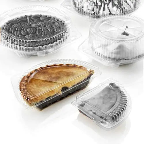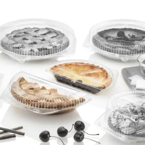 Keep your pies, tarts, and quiches fresh and beautifully displayed with the Inline Plastics 9x4 Half Pie Plastic Clamshell Container. With a 33.8 oz capacity and a secure perimeter seal, this clear PET container is designed to maintain product integrity while maximizing shelf appeal. Ideal for bakeries, supermarkets, foodservice operations, and processors, this versatile clamshell offers exceptional clarity for merchandising and a user-friendly design for easy opening and resealing. This is made from 100% recyclable DPET™. Whether you're packaging fruit pies, savory quiche, or deli specialties, this container is the perfect solution for secure, sustainable, and professional food presentation.