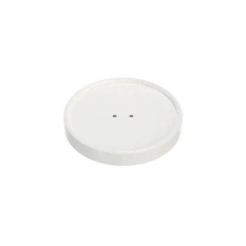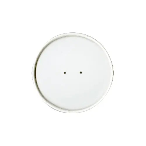 Secure your food with confidence using this vented 16 oz. paper container lid, ideal for both hot and cold menu items. Crafted from durable double-sided poly (DSP) paper, this lid offers a snug, leak-resistant fit on compatible paper food containers—perfect for soups, stews, ice cream, and salads. The built-in vent allows steam to escape, helping to prevent sogginess and condensation, ensuring food stays fresh during transport. Ideal for delis, cafeterias, takeout restaurants, and catering services, this recyclable paper lid is the go-to solution for clean, convenient food delivery and service.